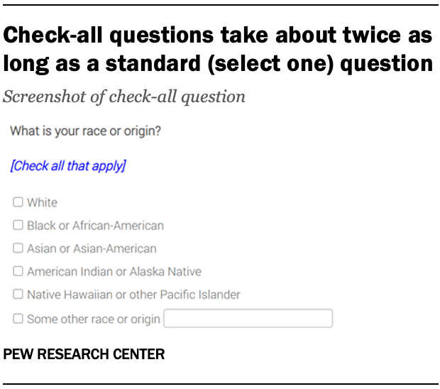 Check-all questions take about twice as long as a standard (select one) question