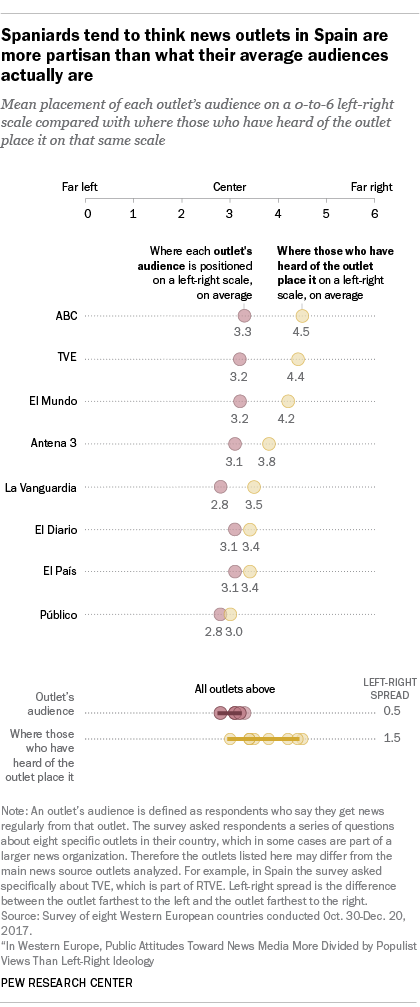 Pew Research CenterMay 14, 2018 News Media and Political Attitudes in SpainSpaniards tend to think news outlets in Spain are more partisan than what their average audiences actually are