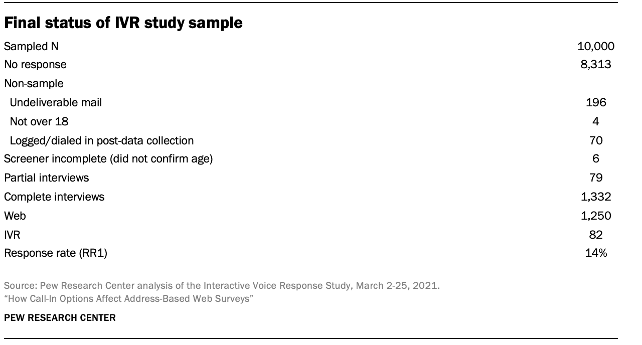 The analysis in this report is based on web- and IVR-completed interviews conducted March 2-25, 2021, among a national sample of 1,332 adults, 18 years of age or older, living in the United States (1,250 respondents were interviewed via web, and 82 were interviewed via IVR). The survey was conducted under the direction of SSRS. A sample of 10,000 residential addresses was drawn from the United States Postal Service Computerized Delivery Sequence File (CDS).