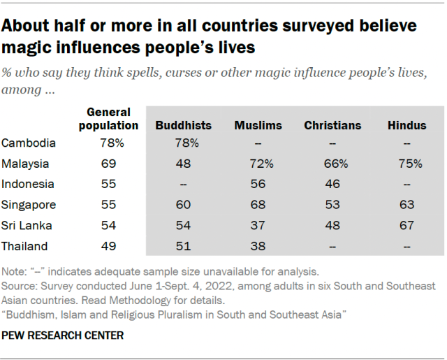 Pew Research CenterSeptember 6, 2023 3. Religious beliefsAbout half or more in all countries surveyed believe magic influences people’s lives