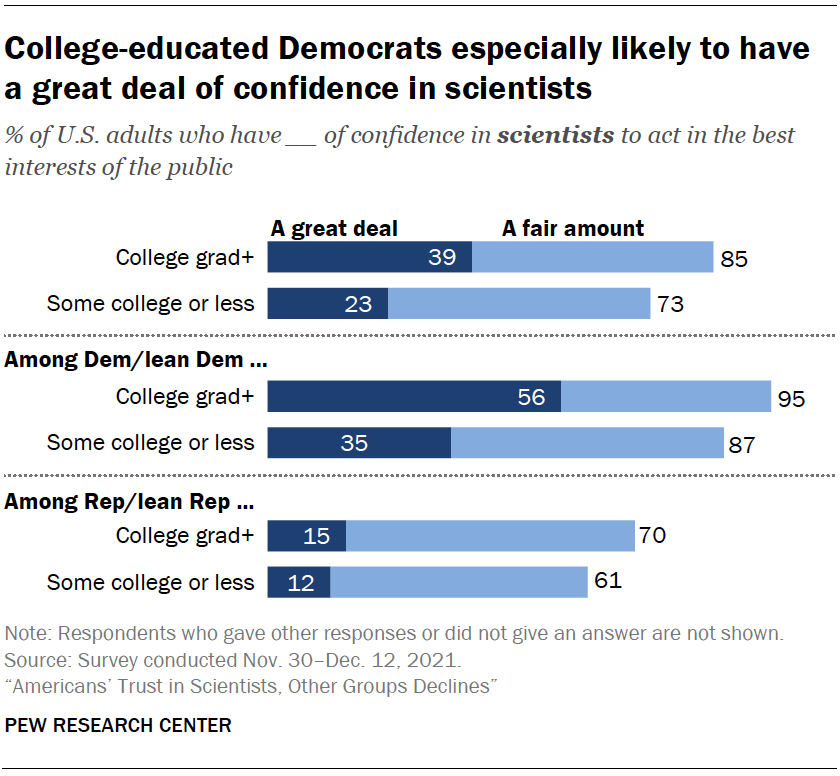 Pew Research CenterFebruary 14, 2022 AppendixCollege-educated Democrats especially likely to have a great deal of confidence in scientists