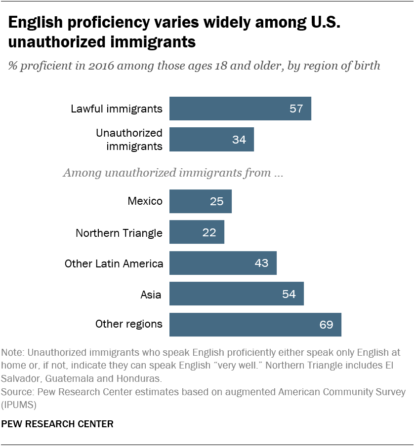 Pew Research CenterMay 23, 2019 U.S. unauthorized immigrants are more proficient in English, more educated than a decade agoEnglish proficiency varies widely among U.S. unauthorized immigrants