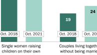 47% of U.S. adults say single women raising children on their own is generally a bad thing for society, an increase of 7 points since 2018.